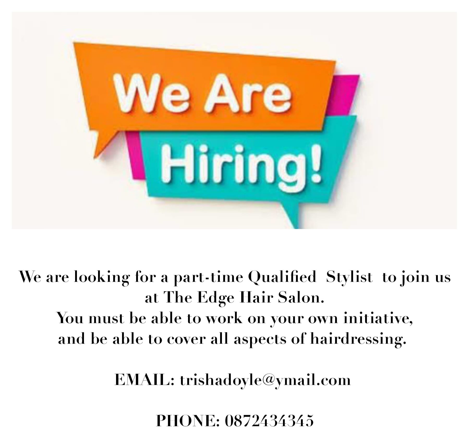 The Edge Hair Salon, Bridge St. , Tinahely, Co Wicklow is a modern bright hair salon, offering all the latest in hair styling and coloring. The salon is located in a convenient location just beside the Bank Of Ireland.